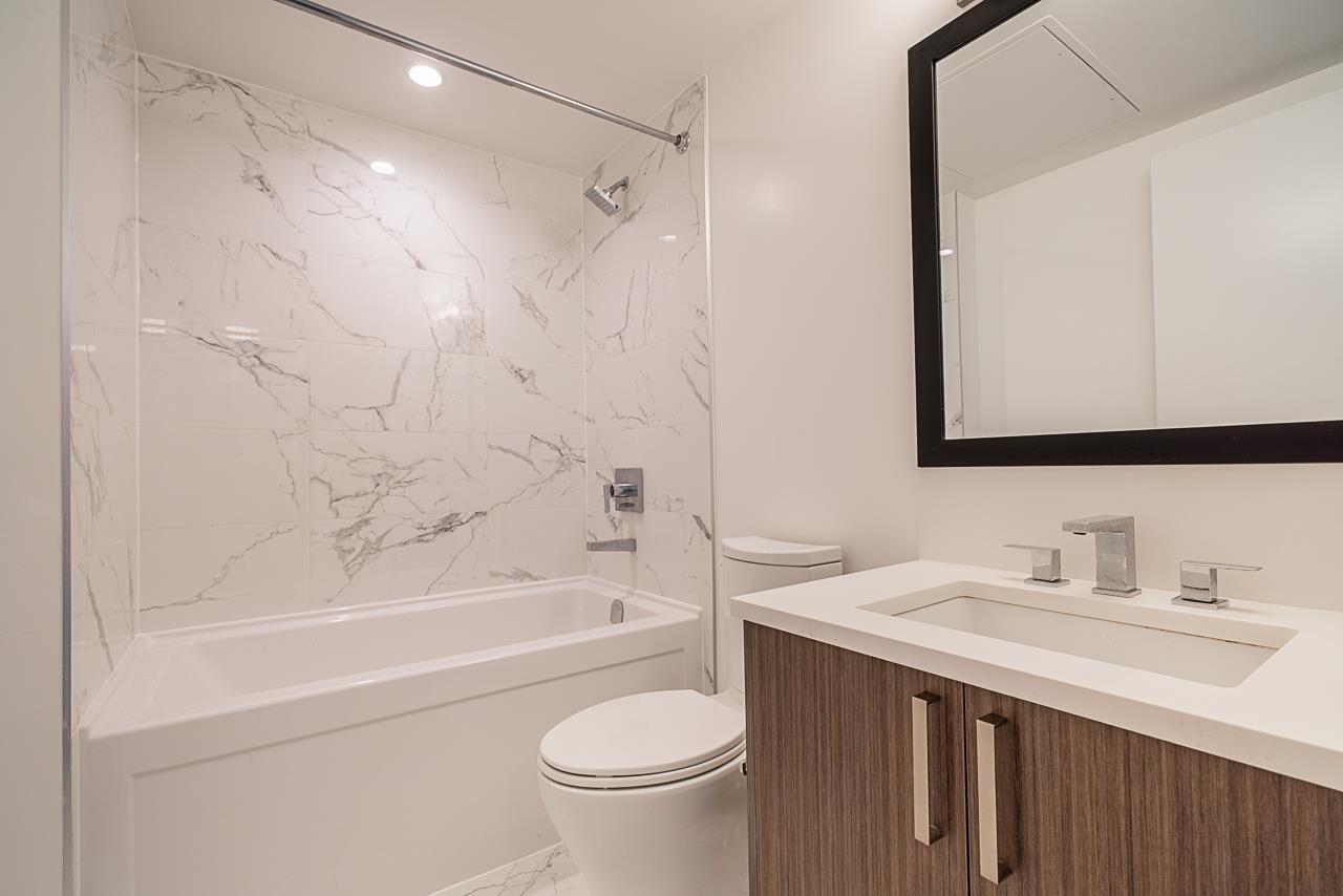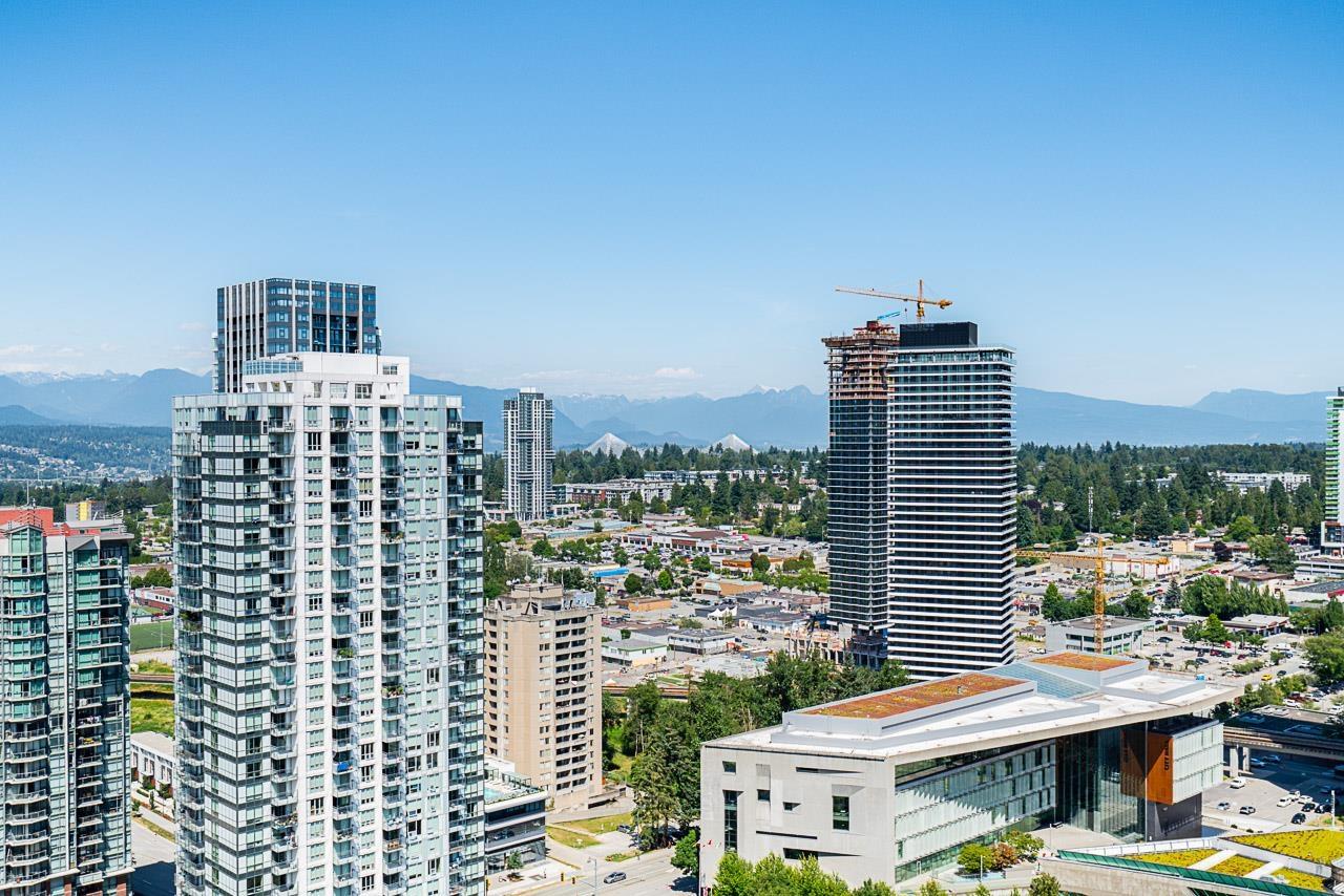 Welcome to One Central, Surrey's tallest residential tower located in the heart of the city! This sleek 2 beds, 1 bath home offers 500 sq ft of thoughtfully designed living space with stunning mountain and city views. The modern kitchen features premium European appliances, quartz countertops, and custom cabinetry. Enjoy floor-to-ceiling Low-E windows with custom roller blinds, a stylish bathroom with floating vanity and frameless glass shower, and in-suite Blomberg washer/dryer. Steps to SFU, Surrey Central SkyTrain, shopping, restaurants, and more. Ideal for first-time buyers or investors! (id:9345)...