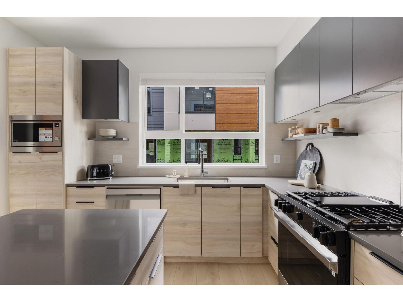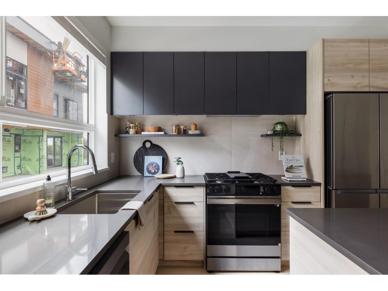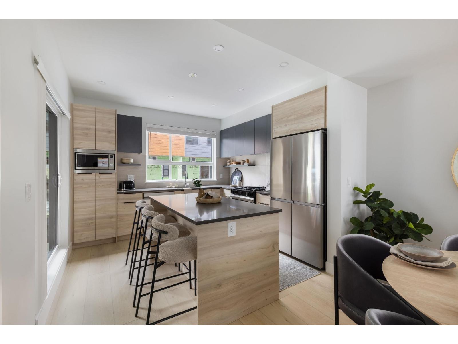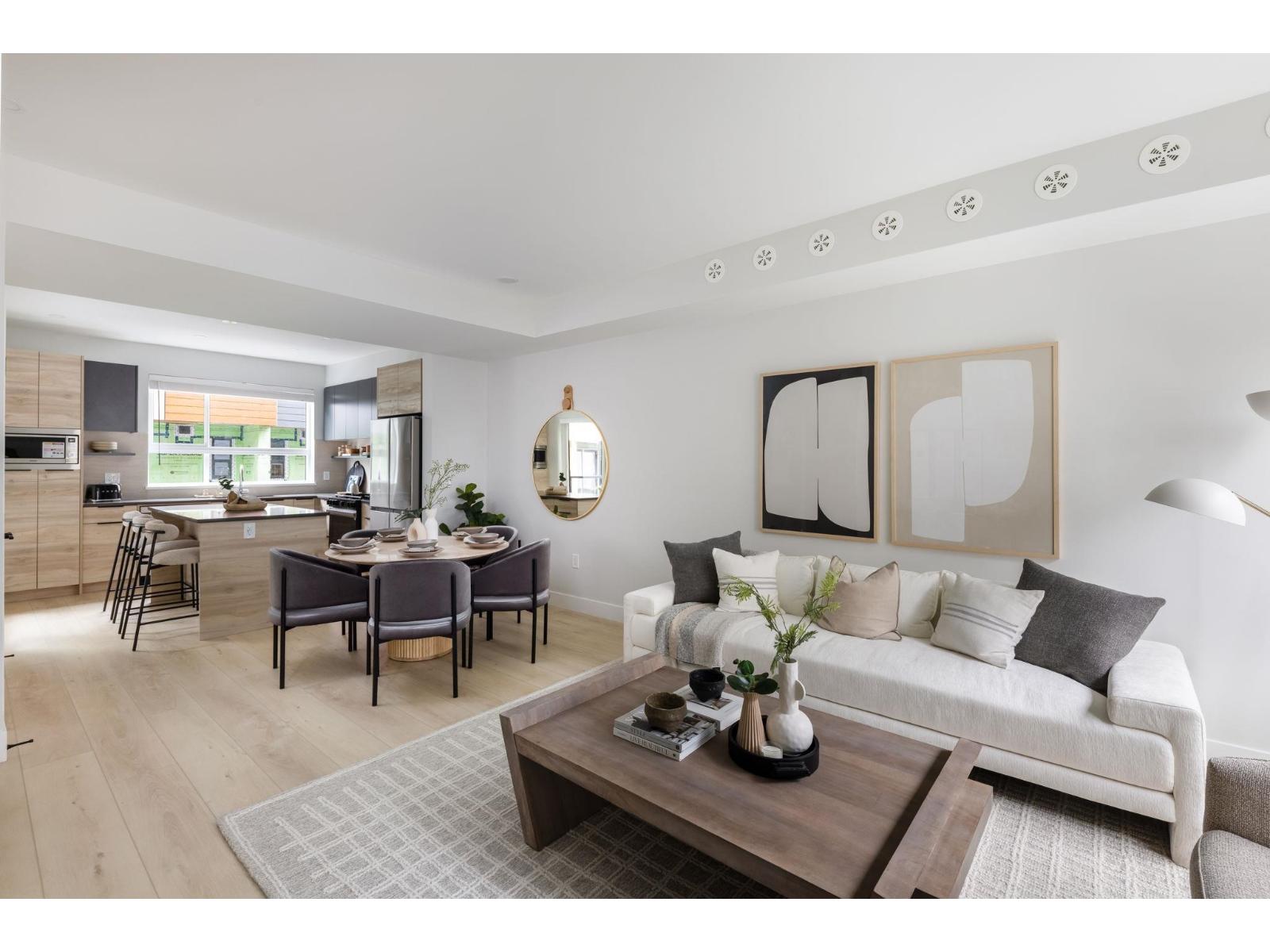 Welcome to Highstreet Village. This stunning townhome offers 3 bedrooms + flex space in a vibrant 12-acre community. Featuring 9' ceilings, durable vinyl plank flooring, and sleek roller shades, this home is designed for comfort and style. The modern kitchen boasts quartz countertops, two-tone cabinetry, and premium stainless steel appliances. A spacious primary suite includes a walk-in closet and spa-like ensuite with a frameless glass shower. Enjoy a private patio, attached garage, and top-tier amenities including a gym, rooftop terrace, and play area. Steps from Highstreet Shopping Centre, Hwy 1, and Abbotsford Airport. (id:9345)...
