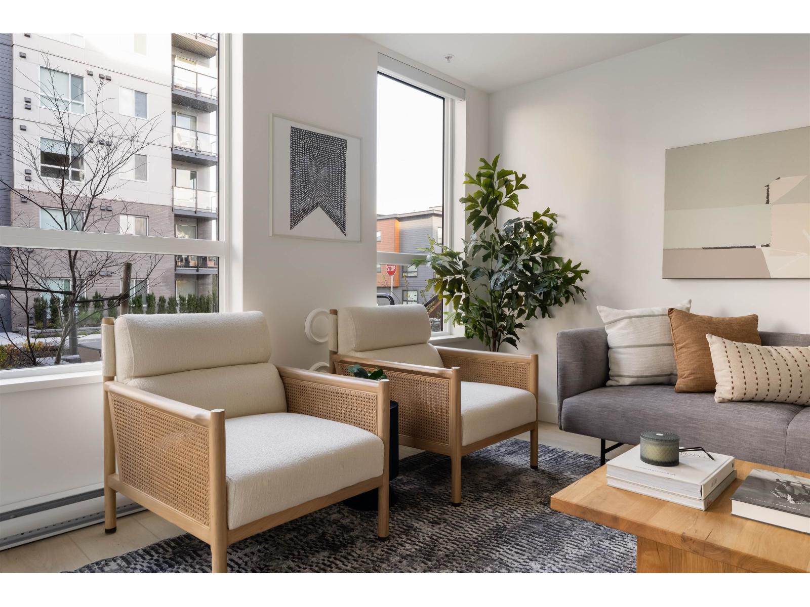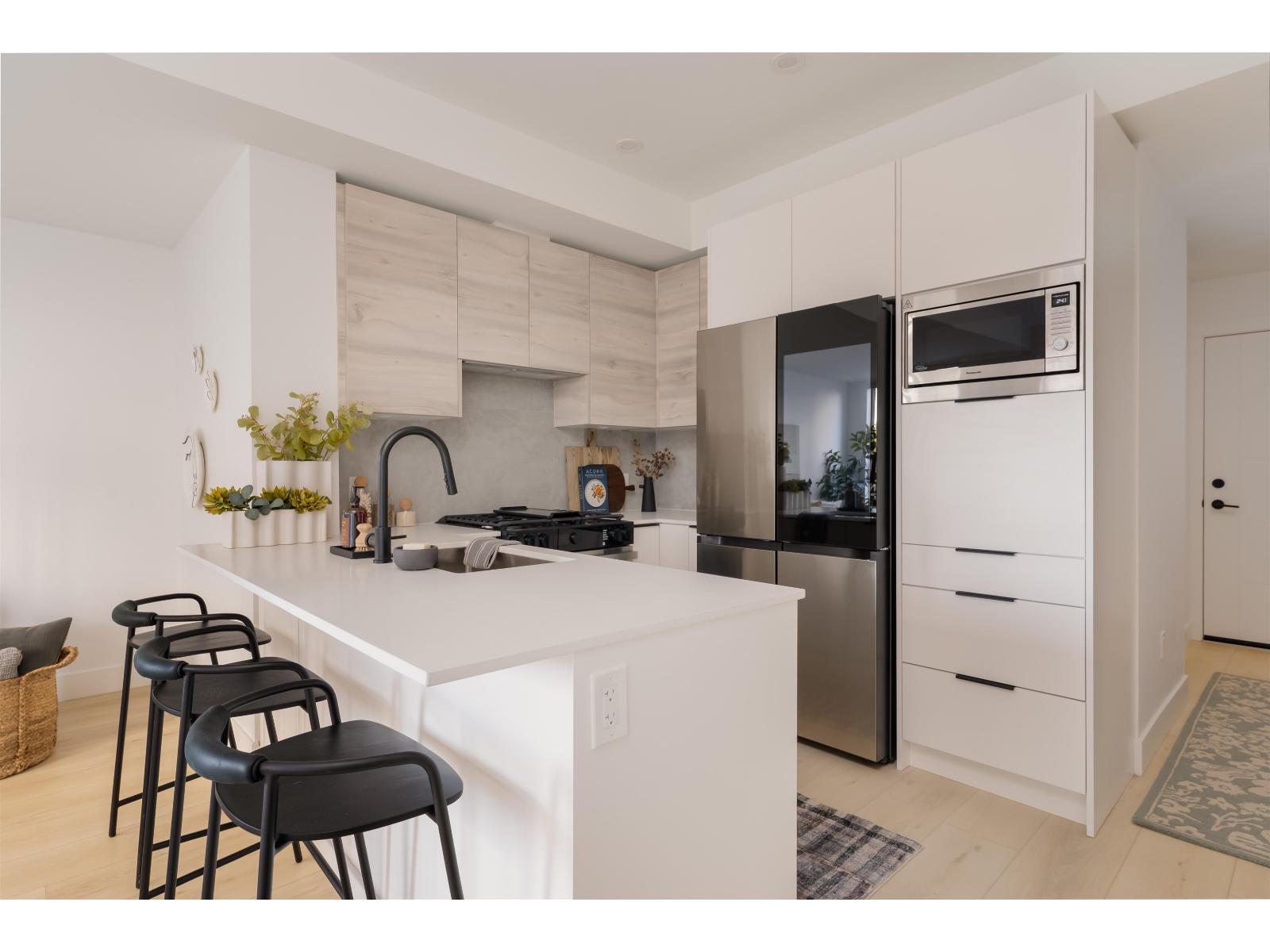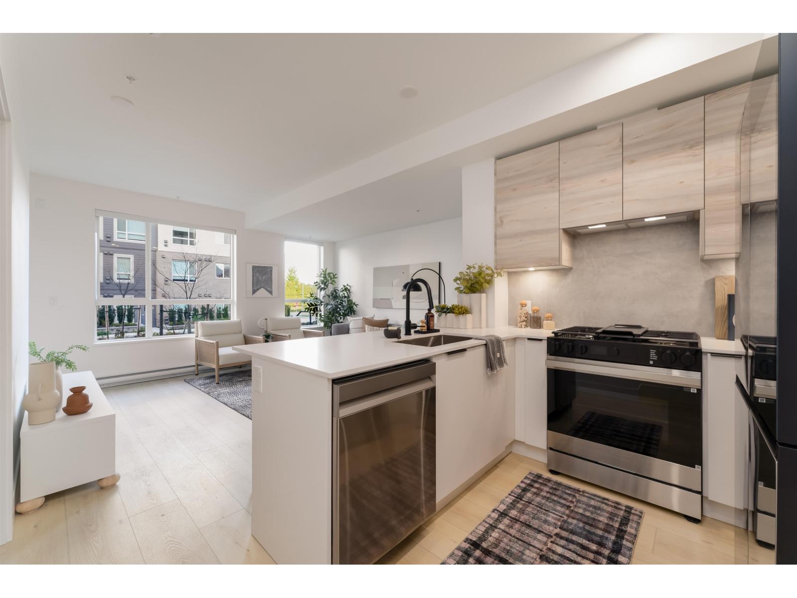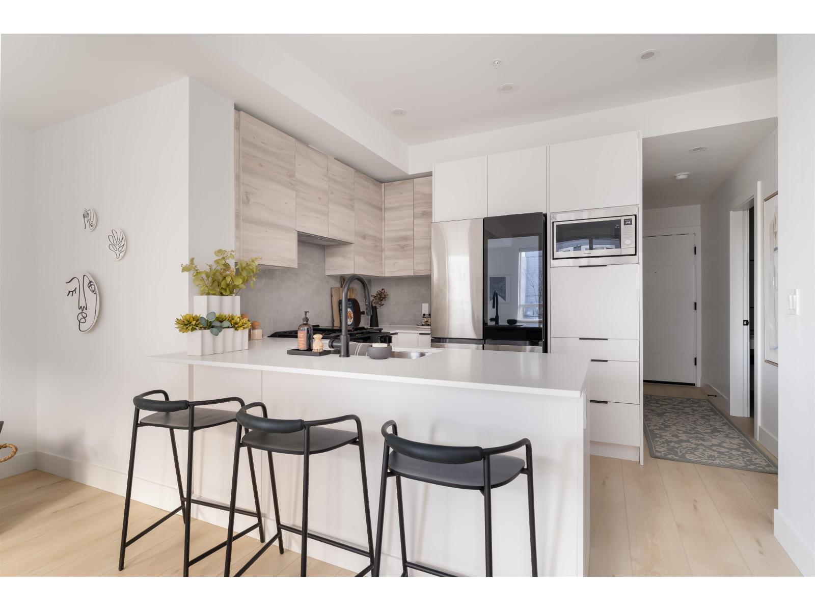 Beautifully designed Jr 2 bedroom, 2 bathroom ground-level home offers modern living with exceptional convenience. Featuring a bright, open layout with large windows and 9' ceilings, the space feels airy and inviting. The contemporary kitchen includes quartz countertops, stainless steel appliances, soft-close cabinetry, and an oversized island,perfect for everyday living and entertaining. Enjoy seamless indoor-outdoor living with your private ground-level patio, ideal for morning coffee, pets, or hosting Located just steps from Highstreet Mall, transit, and Highway 1 access, everything you need is right at your doorstep. Close to all levels of schools, including the University of the Fraser Valley, and minutes from the Abbotsford International Airport - Highstreet Village has it all. (id:9345)...